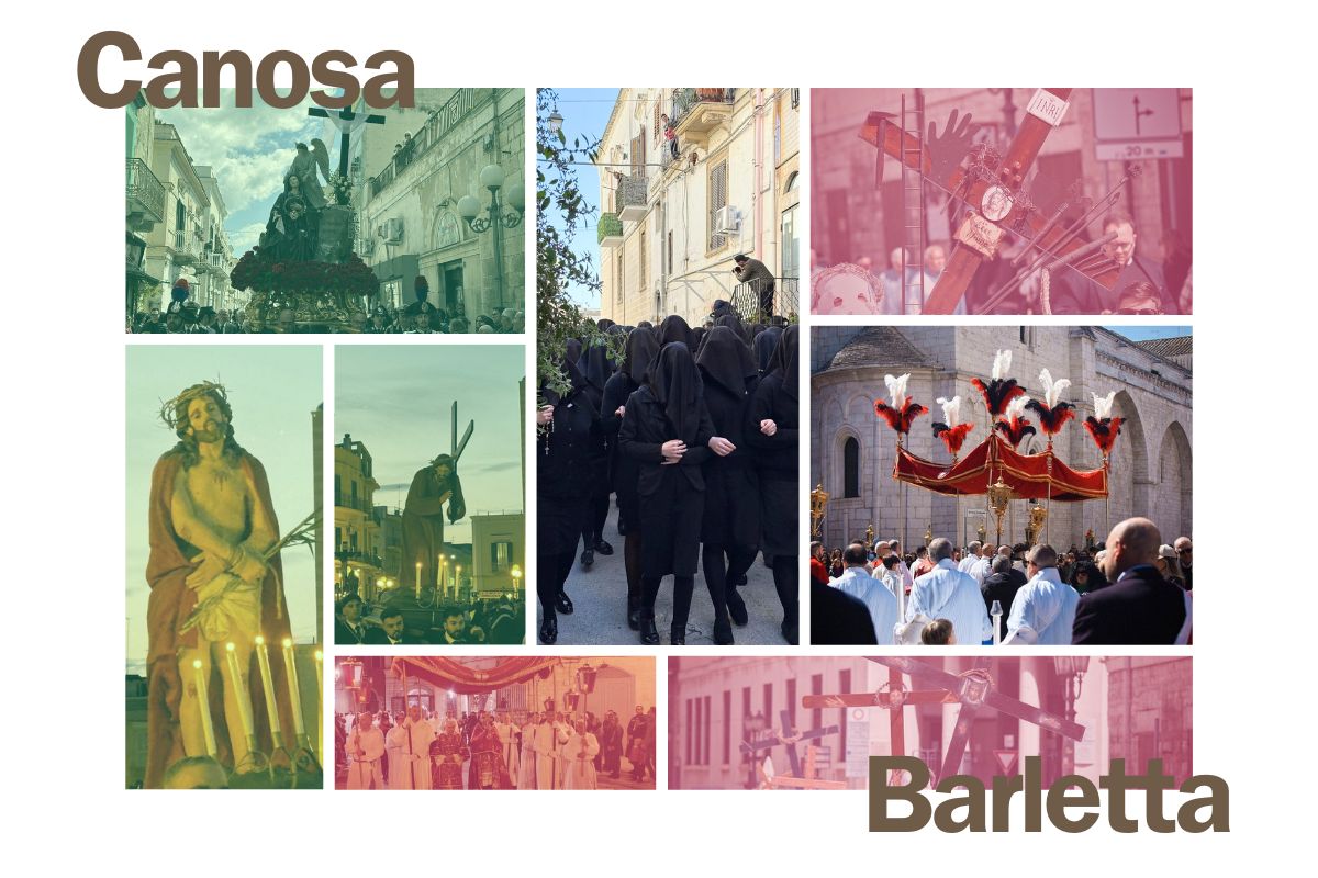 Barletta e Canosa sono due città in cui le tradizioni sono particolarmente radicate e vissute con grande partecipazione dei fedeli. La redazione Viva ha seguito la processione eucaristico-penitenziale e quella del Legno della Croce a Barletta, entrambe nel Venerdì Santo, e le processioni dell'Addolorata, dei Misteri e della Desolata, oltre alla Passione vivente "Tutto è compiuto" a Canosa di Puglia.