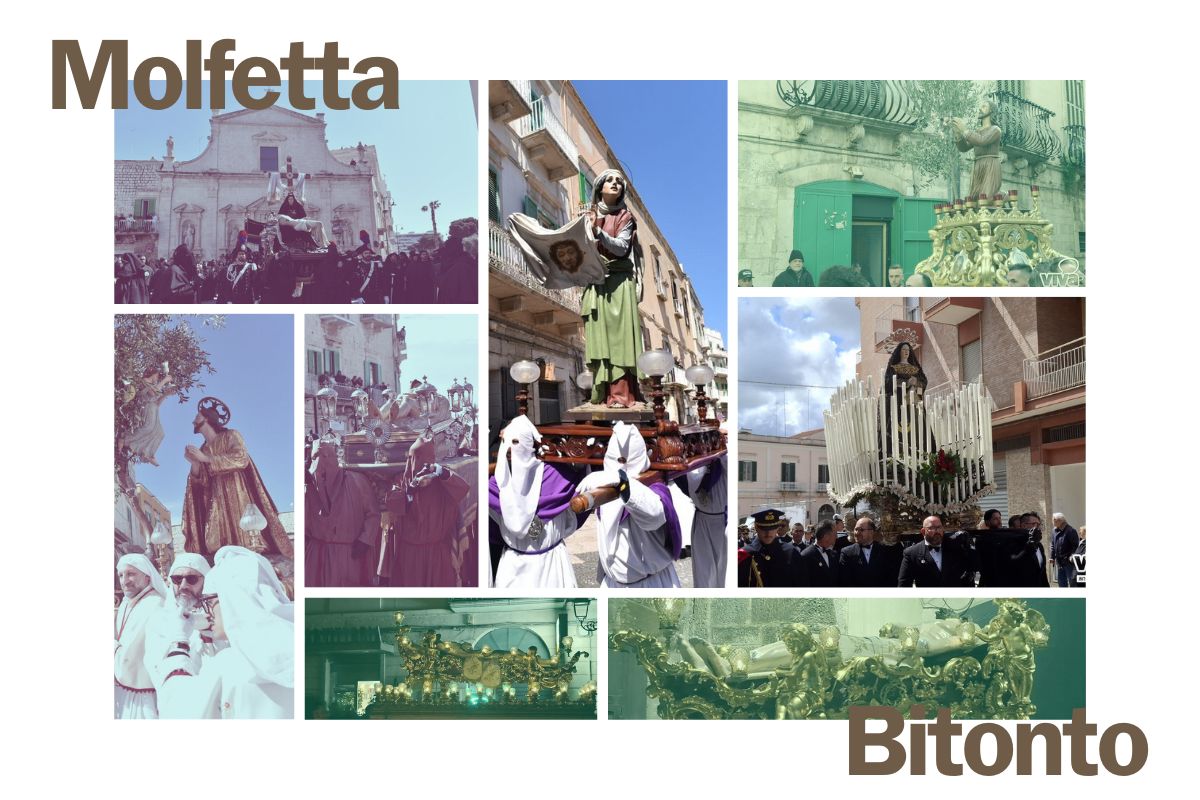 Pasqua è una festività molto sentita a Molfetta: numerose processioni ed eventi ravvivano la città. La redazione di MolfettaViva ha seguito con entusiasmo la processione dell'Addolorata, i Cinque Misteri del Venerdì Santo e la processione della Pietà. Anche a Bitonto sono state seguite le suggestive processioni della Desolata e dei Misteri.