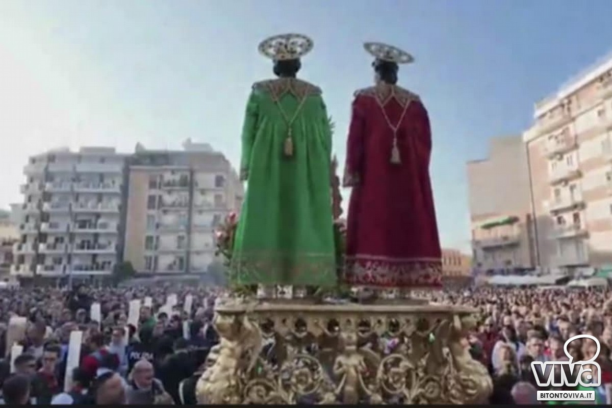 Bitonto in festa per i Santi Medici: folla e commozione all’uscita delle immagini